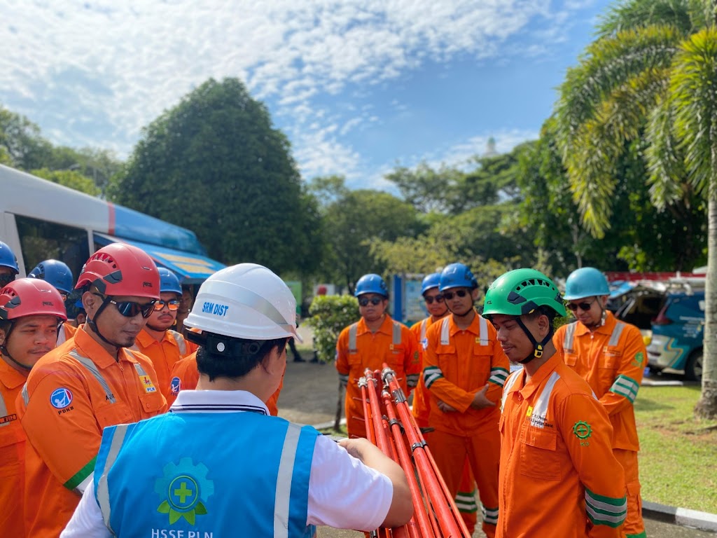 Senior Manager Distribusi PLN UID Kalbar, Sumarsono (tengah) memberikan arahan untuk selalu mengutamakan keselamatan kerja dan selalu siaga dalam menjaga keandalan listrik. FOTODOKPLN