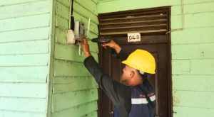 | Petugas PLN sedang melakukan pemasangan kWh Prabayar di salah satu rumah warga Desa Beluh Mulyo (20/7). FOTODOKPLN |