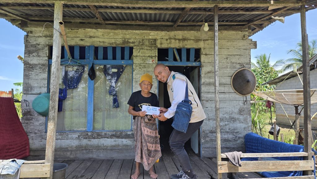 | Ketua YBM PLN UP3 Mempawah, Muhammad Irvan Harvani, menyerahkan langsung bantuan paket sembako dan santunan kepada salah satu kaum dhuafa di wilayah kerja PLN UP3 Mempawah. Kegiatan ini menjadi bagian dari aksi kepedulian sosial PLN dalam memperingati Hari Listrik Nasional ke-80, sebagai bentuk nyata semangat “Terangi Negeri dengan Kepedulian dan Cinta Kasih (FOTO/DOK/PLN). |